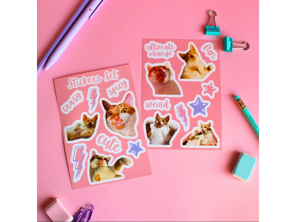 Dva aršíky samolepek s kocourkem Kimchim a nejen s ním. Nechte do svého života vstoupit trochu těch rošťáren společně s tímto zrzavým společníkem ✨